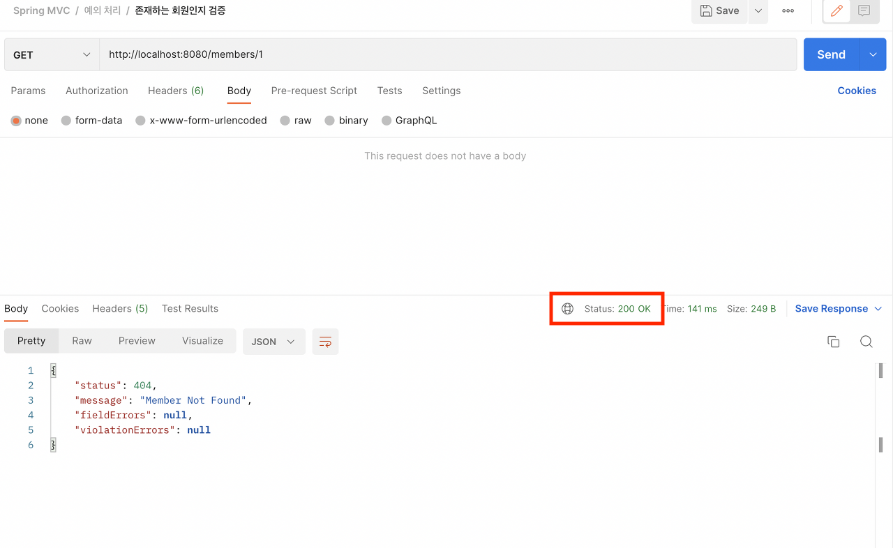 - 위의 사진을 보면 메세지에는 404이지만 status는 200으로 들어온 것이 보인다.