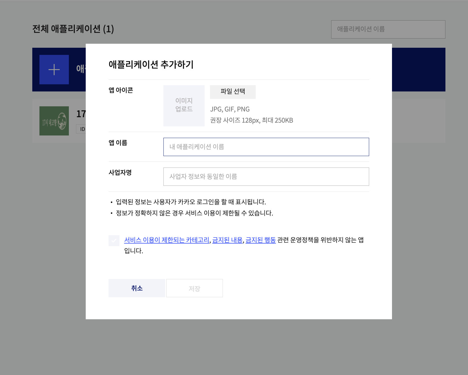 - 위의 사이트로 들어가 애플리케이션을 생성해준다.