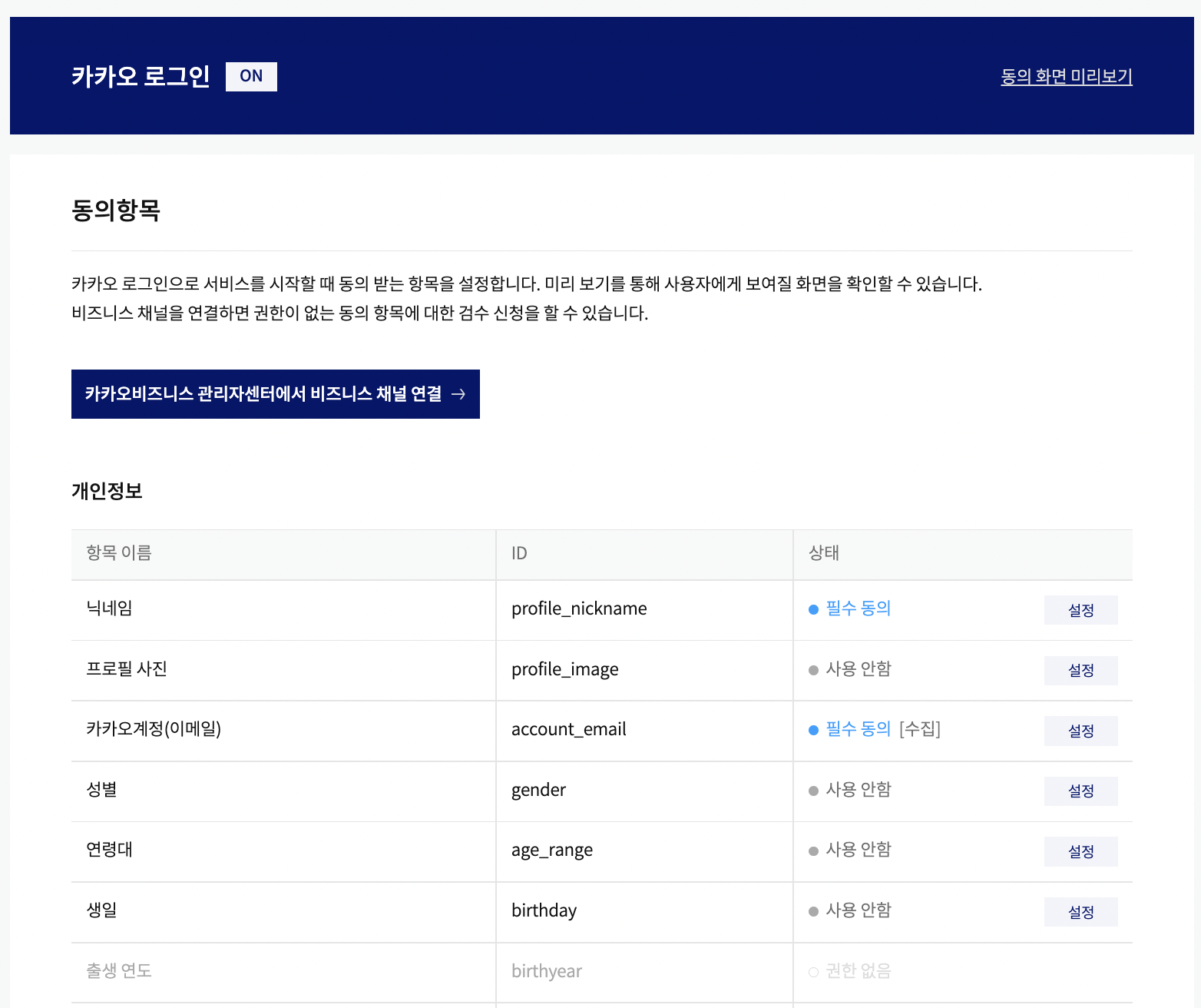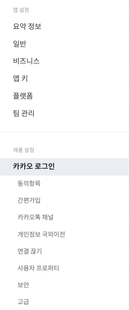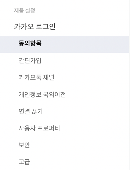 - 제품 설정 👉🏻 동의 항목 👉🏻 필요한 정보 동의 설정 (필자는 이메일과 이름을 가져옴)