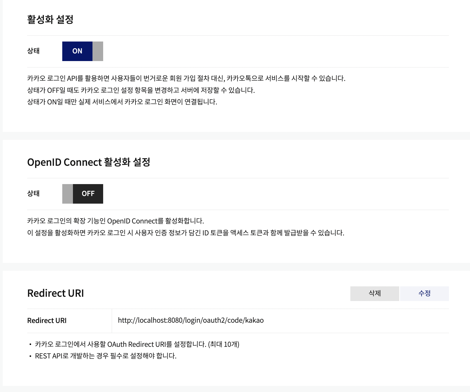 redirectUri: http://localhost:8080/login/oauth2/code/kakao