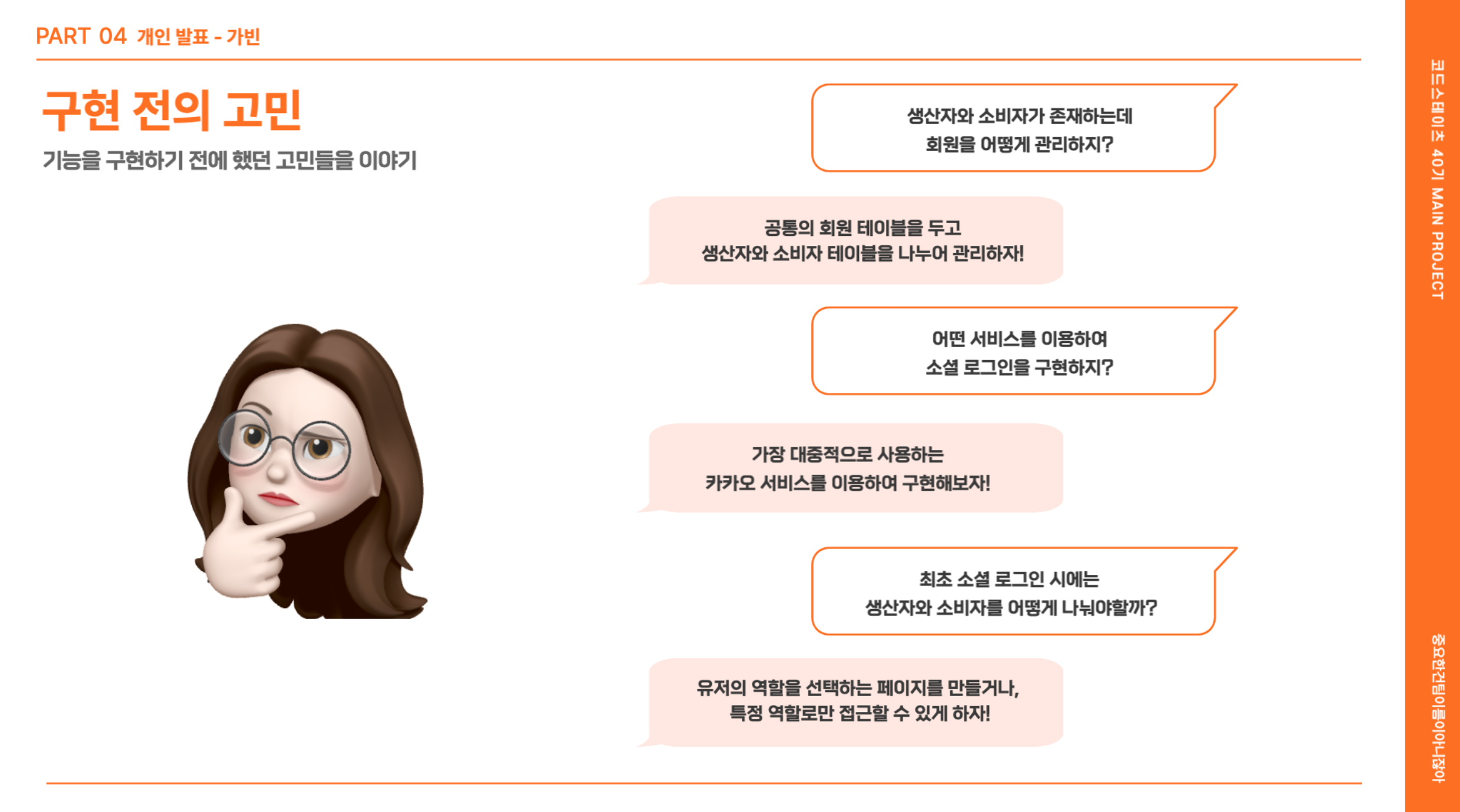 : 메인 프로젝트 서버는 생산자와 소비자가 나뉘어져 있었다. 그렇기 때문에 무조건 둘 중의 하나의 역할을 선택하고 해당 권한이 있어야 했다. 하지만 소셜 로그인 사용자는 선택하기 어렵기 때문에, 따로 선택할 수 있는 페이지를 만들었다. 중요한 것은 이 페이지는 "소셜"권한 사용자만 접근이 가능하다는 것이다. 만약 생산자나 소비자로 역할을 선택했다면 그 이후에는 접근이 불가하다.