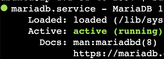 - 만약 실행되고 있지 않다면, sudo systemctl start mariadb 입력하여 실행