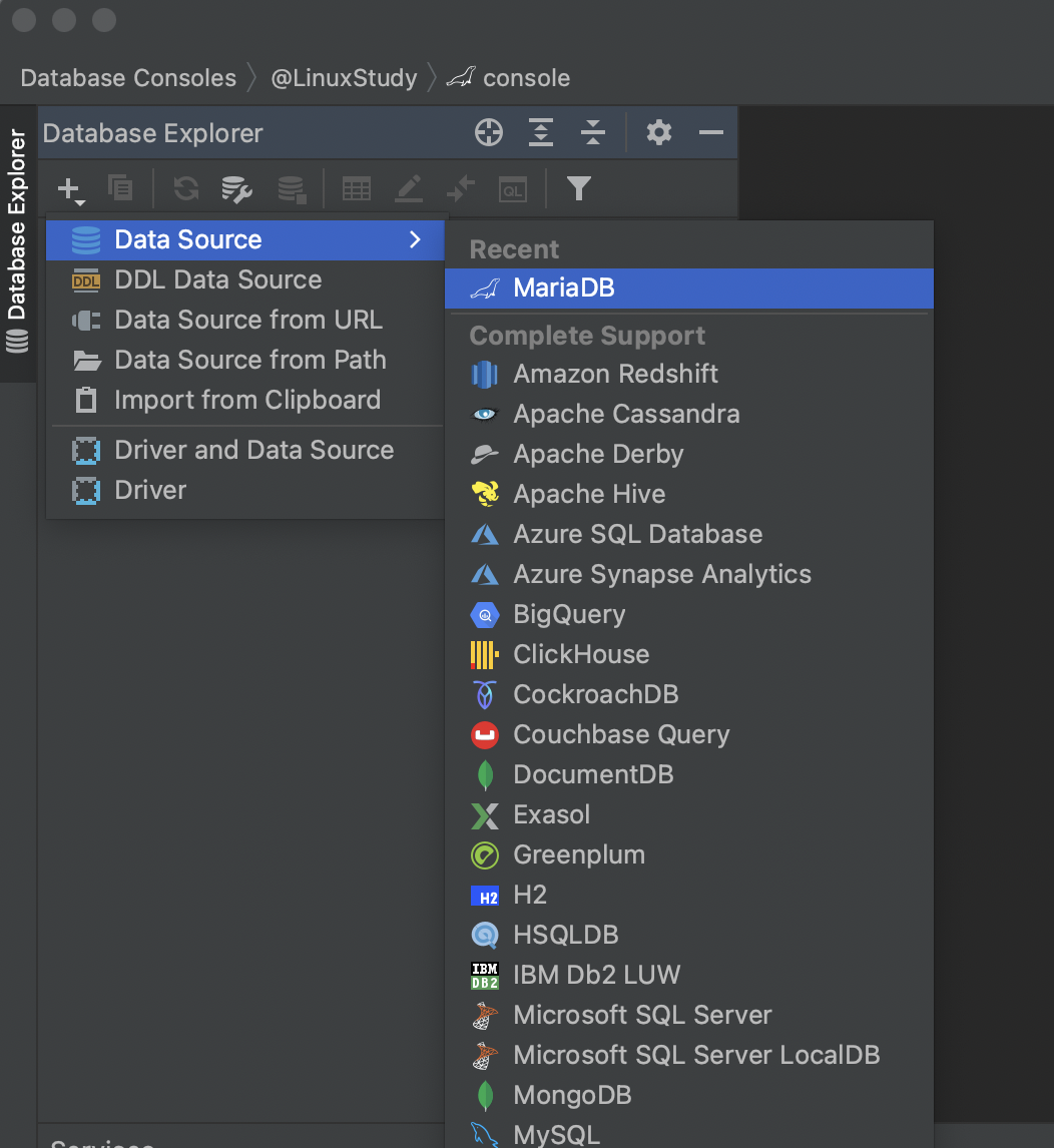 - 아래의 왼쪽 사진처럼 MariaDB를 선택해준다.