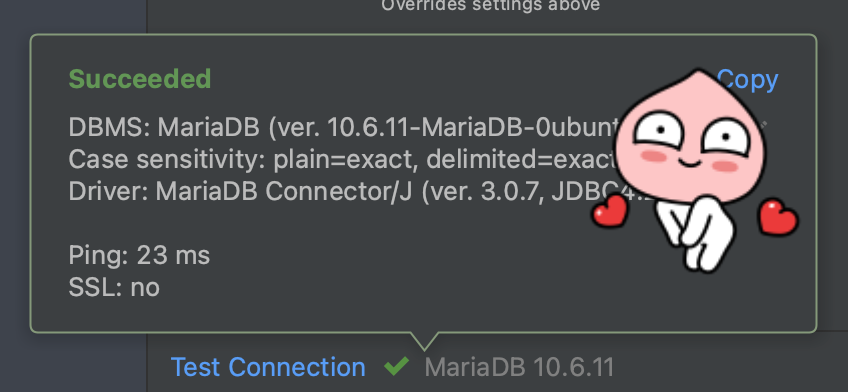 - 아래의 Test Connection을 누르면 확인할 수 있다.