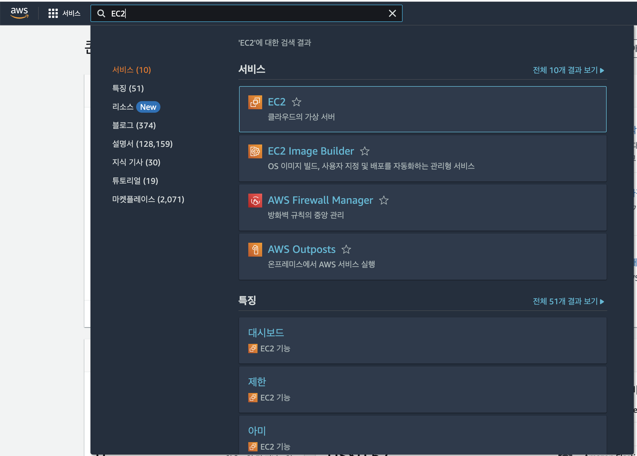 : 우측의 EC2 대시보드 혹은 인스턴스를 클릭한 후, 인스턴스 시작을 클릭하여 인스턴스 생성을 위한 작업을 시작